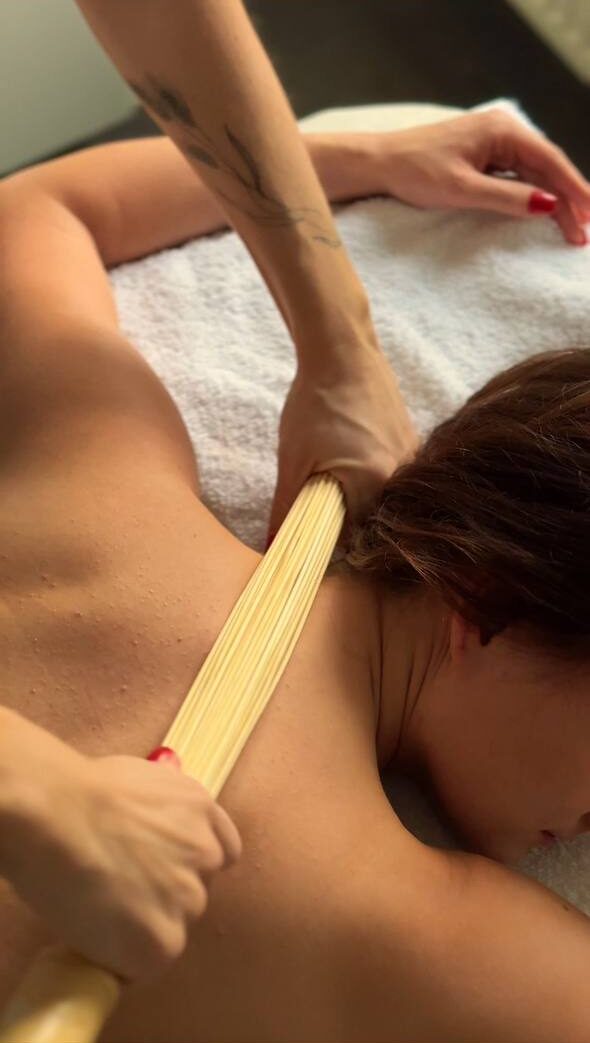 The bamboo massage reaches deeper than hands ever could –  it melts away muscle tension, stimulates lymphatic flow, reduces fluid retention and smooths the appearance of cellulite.
